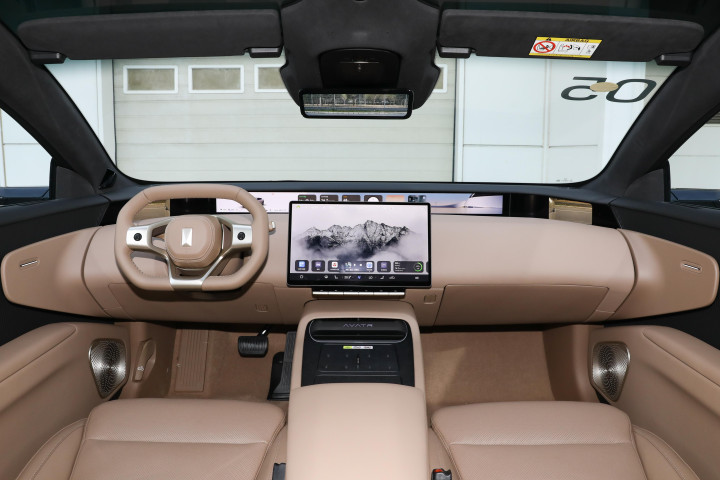 观察内饰装潢时,宽阔的中控台面就给人带来了不一样的感觉,主要还是仰仗车身规格的变化,阿维塔12四激光版的车长5020mm、宽度1999mm、高度1460mm、轴距3020mm,已经踏入C级区间,宽度、轴距的提升更为明显,而且座舱仅为5座、4座布局服务,提升效果自然显著。从车高还能看出,款式设计为轿车定位,还能凭借沉稳的C级规格增添商务气息,用于接待客户也完全不成问题。
